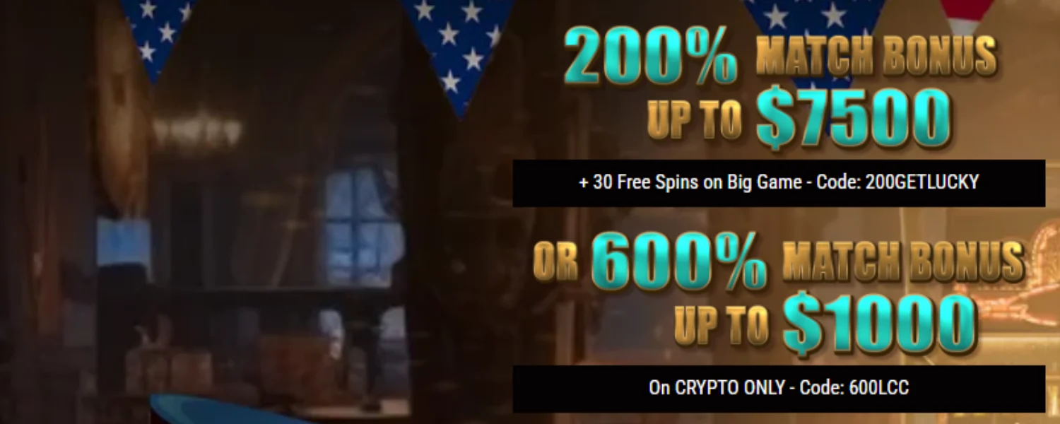 Ready to ride the reels? Lucky Creek Casino welcomes new players with an exciting 200% match bonus up to $7,500 plus 30 free spins on the popular slot Big Game when you use promo code 200GETLUCKY. If you prefere crypto deposit then use bonus code 600LCC and get 600% bonus up to $1,000
